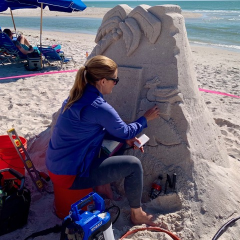 In one of the visits I had with Amanda, I asked her about the other sand sculptures she has made. She pulled out her phone and began scrolling through a photo gallery of her creations. There were sculptures for wedding proposals, corporate logos, team building events, and family reunions. Some sculptures were from classes she teaches. And, others were entries in sand (or snow) sculpting contests. As Amanda described the designs, I felt her contagious excitement and joy over the details of each one.
